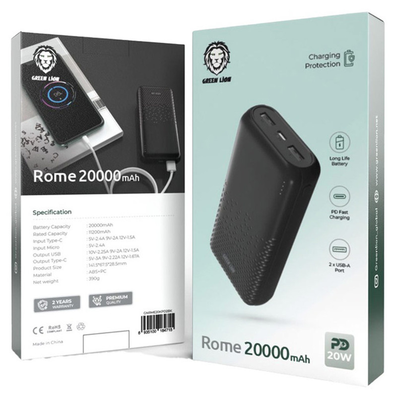 پاوربانک گرین لاین مدل Rome ظرفیت 20000 میلیآمپر ساعت