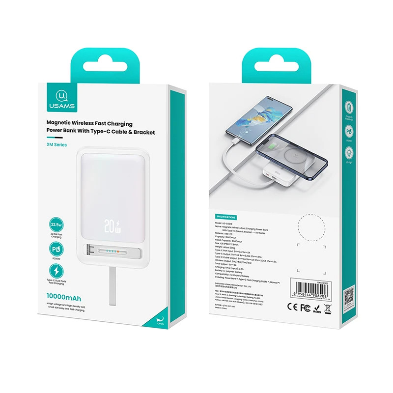 پاوربانک یوسمز طرح مگ سیف مدل US-CD219-22.5W ظرفیت 10000 میلی آمپر ساعت