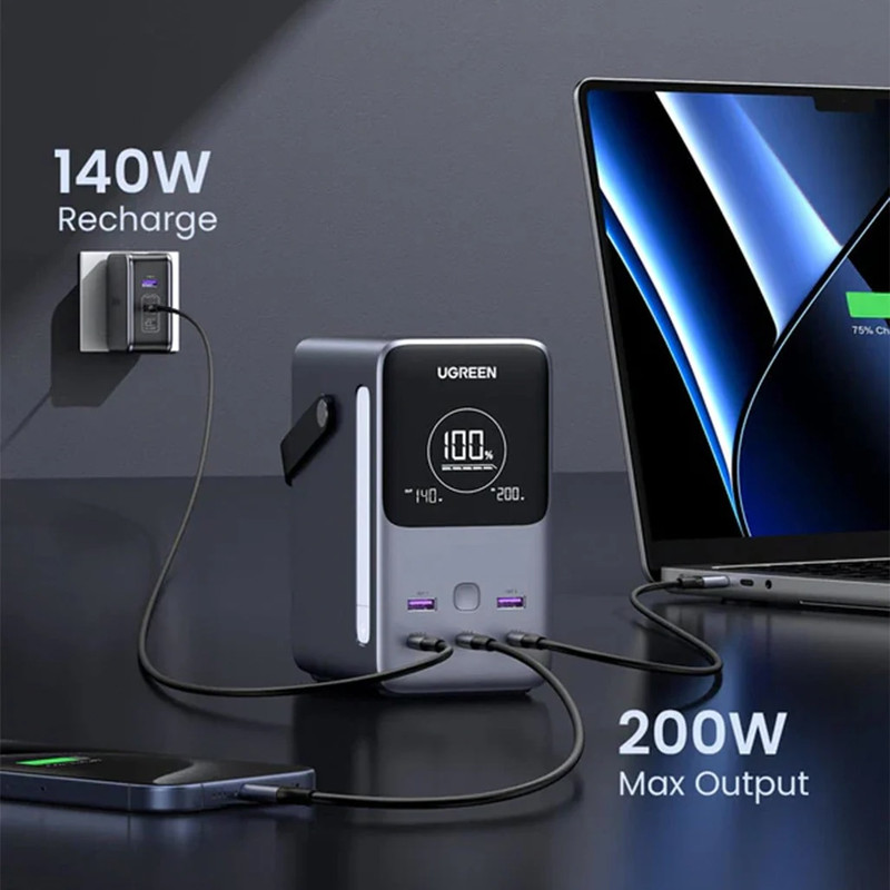 این پاوربانک UGREEN 48000mAh 300W با دستگاههایی که از USB-C و USB-A برای شارژ استفاده میکنند، سازگار است. بنابراین، میتواند با اکثر گوشیهای هوشمند، تبلتها، لپتاپها و سایر دستگاههای الکترونیکی که از این پورتها پشتیبانی میکنند، به خوبی کار کند. این دستگاهها شامل موارد زیر میشوند: