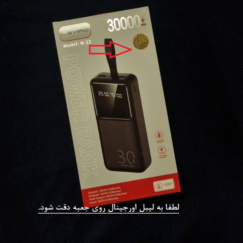پاوربانک 10 وات لوینو مدل N-22 ظرفیت 30000 میلی آمپر ساعت