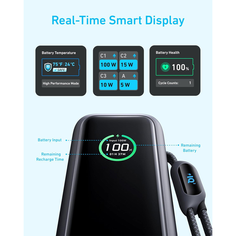 پاوربانک 100 وات انکر مدل A1695 ظرفیت 25000 میلی آمپر ساعت به همراه دو کابل USB-C