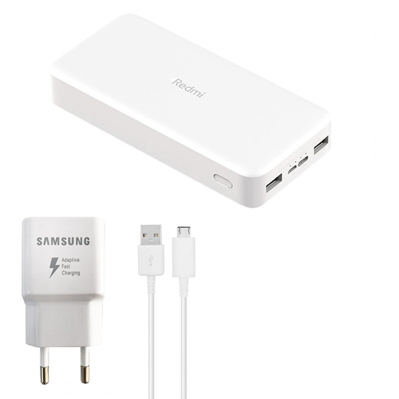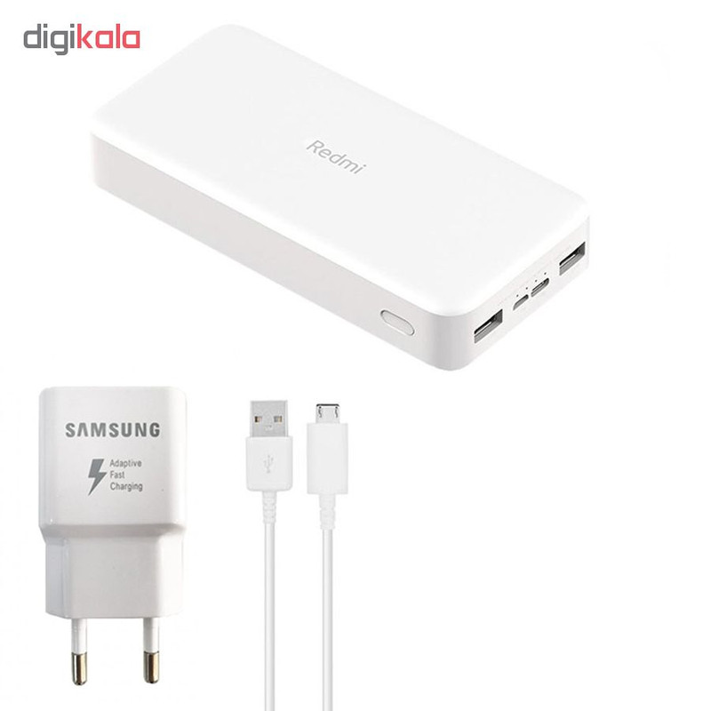 پاوربانک 18 وات شیائومی مدل Redmi PB200LZM ظرفیت 20000 میلی آمپرساعت به همراه شارژر دیواری سامسونگ و کابل تبدیل