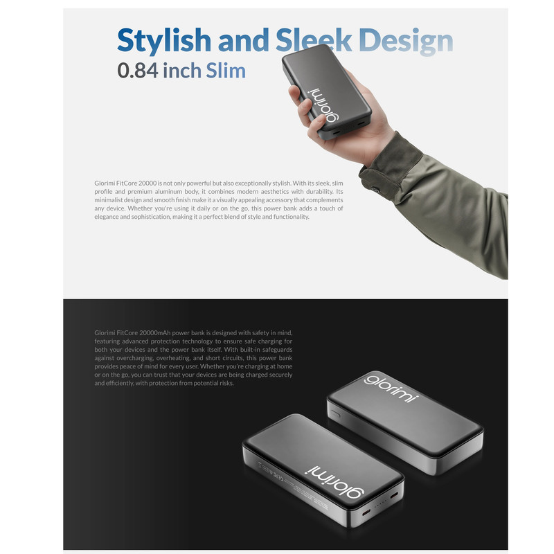پاوربانک 20وات گلوریمی مدل FitCore ظرفیت 20000 میلی آمپر ساعت