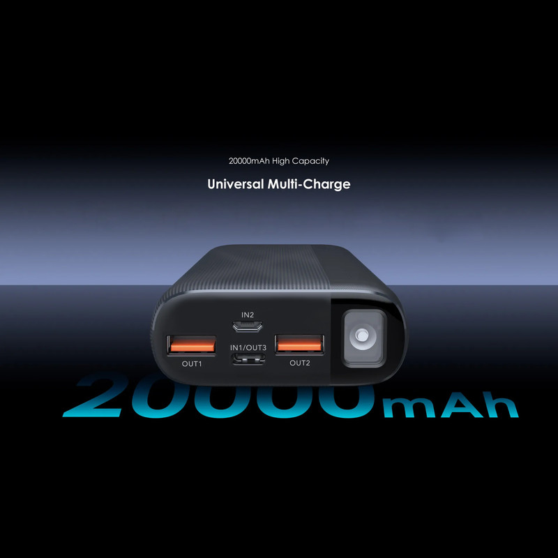 ظرفیت باتری داخلی 2۰.۰۰۰ میلی آمپر ساعت / دارای تکنولوژی PD Fast Charge / دارای تکنولوژی QC.۳ / توان خروجی تا 20 وات / دارای ۲ پورت خروجی USB / دارای پورت Type-C بعنوان ورودی و خروجی / دارای پورت ورودی Mico-USB / دارای LED نمایشگر میزان شارژ / طراحی بدنه بسیار مقاوم و شیک
