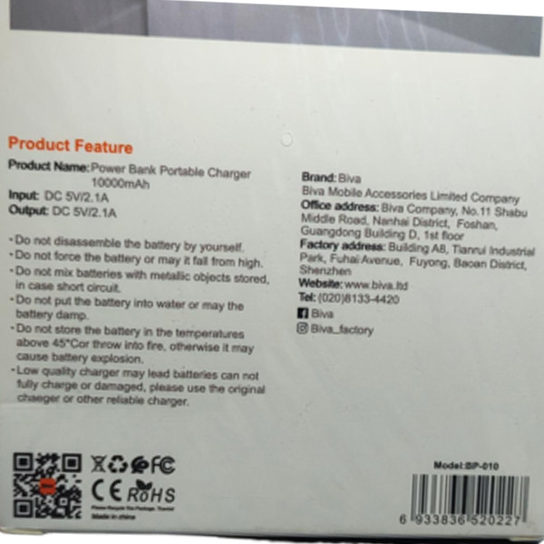 پاور بانک بیوا مدل BP-010 ظرفیت 10000 میلی آمپر ساعت