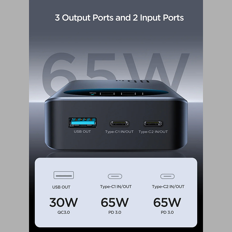 دارای کیسه پارچه ای برای نگهداری پاورباتک / کابل شارژ همراه تایپ سی به تایپ سی / شارژ با توان خروجی 65 وات