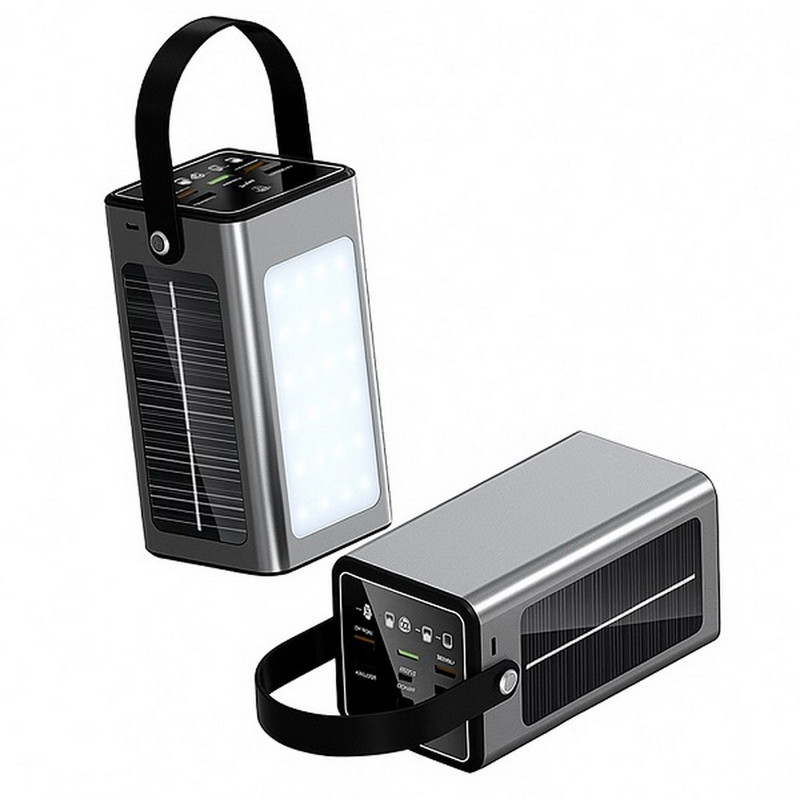پاوربانک 70000 میلی آمپر ساعت به همراه یک خروجی USB و یک خروجی USB-C و چراغ smd و صفحه شارژ با خورشید