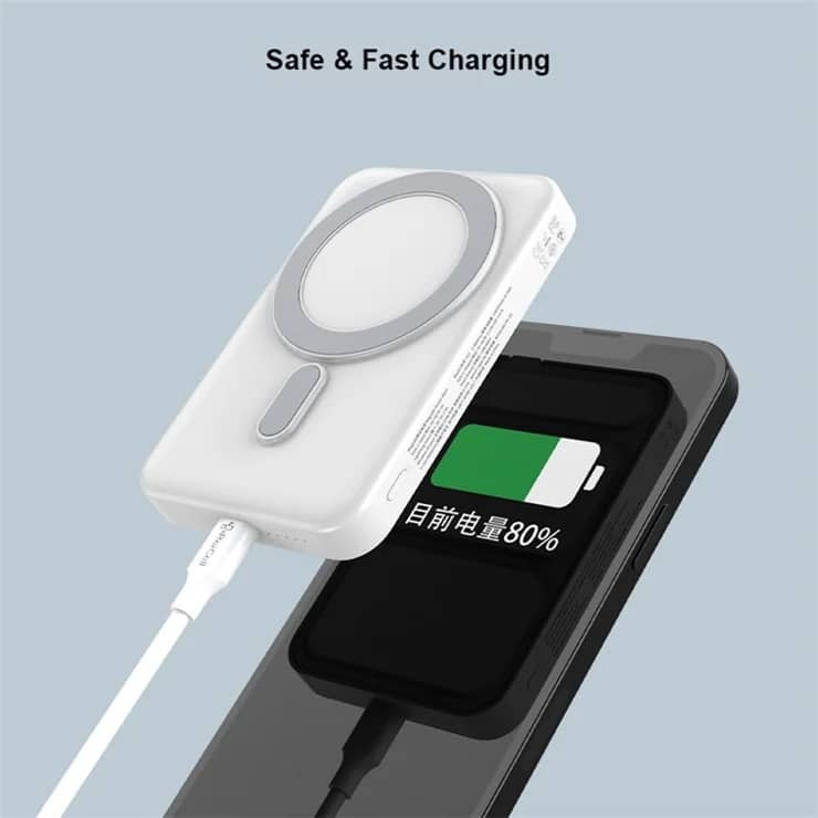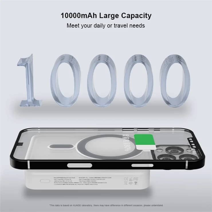 Type-C Output : ۵V/۳A ۹V/۲.۳A ۱۲V/۱.۶۷A (Max ۲۰W) Type-C Input : ۵V/۳A ۹V/۲.۳A ۱۲V/۱.۶۷A (Max ۲۰W) Wireless Output : ۲۰W Output Interface : USB-Type C Input Interface : USB Type C Suitable Magnetic Sunction Sheet For Shell Selection Firm and Not Falling Off , Automatic Absortion Free Type-C to Type-C Cable Weight: ۱۸۸ g