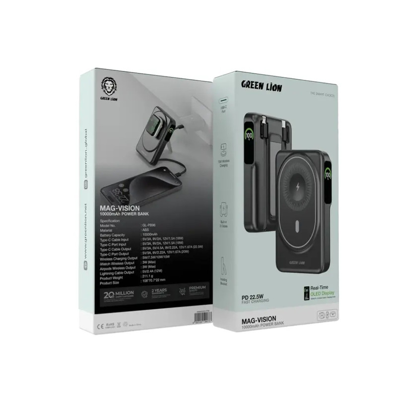 پاور بانک گرین لاین مدل مگ سیف مگ ویژن ظرفیت ۱۰ هزار میلی آمپر ساعت