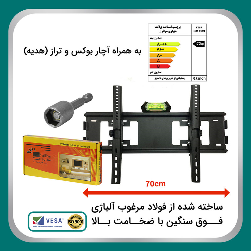 پایه دیواری تلویزیون سرافراز مدل H7 مناسب برای تلویزیون های ۴۲ تا 98 اینچ