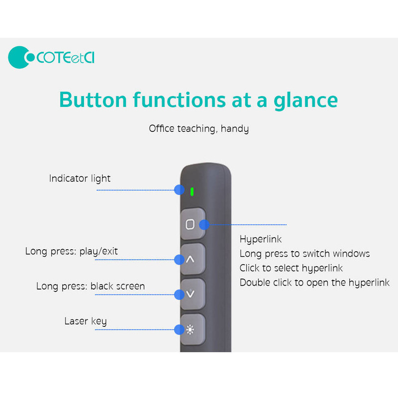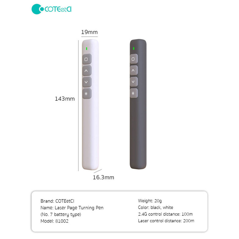 منبع تغذیه باتری AAA ( باتری قلمی ) - دارای دانگل USB جهت اتصال به کامپیوتر و... - لیزر با برد 20 متر - دارای کلیدهایی برای کنترل اسلاید و میزان صدا -تکنولوژی لیزر RF 2.4GHz - پشتیبانی از Windows / Mac OS / Android / IOS - پشتیبانی از ویندوز XP الی ویندوز 11 - مناسب برای سخنرانان ، معلمان و اساتید دانشگاه و همچنین سازمان ها - برند جهانی - پرفروش سایت آمازون