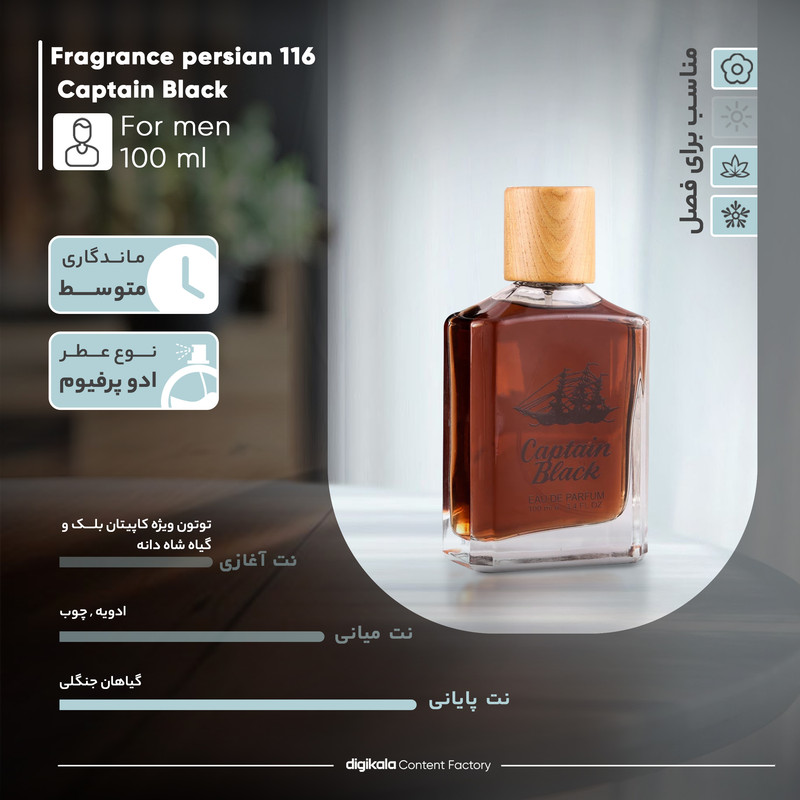 پرفیوم مردانه فراگرنس پرشیا 116 مدل کاپیتان بلک حجم 100 میلیلیتر