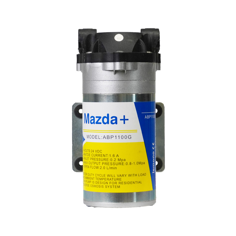 پمپ 24 ولت MAZDA یک موتور قدرتمند و با کیفیت برای دستگاههای تصفیه آب خانگی است که وظیفهی اصلی آن افزایش فشار آب برای عبور از فیلتر ممبران میباشد. این پمپ با طراحی مقاوم، عملکرد کمصدا و عمر طولانی، تضمینکنندهی عملکرد پایدار و مؤثر دستگاه تصفیه آب در بلندمدت است.
