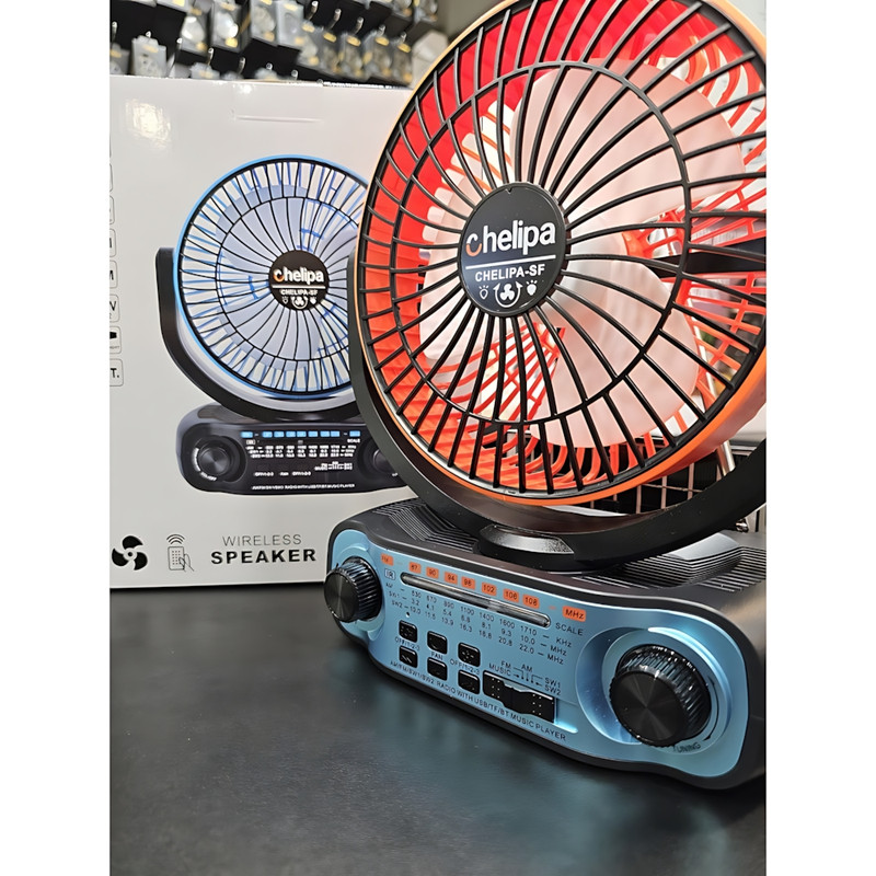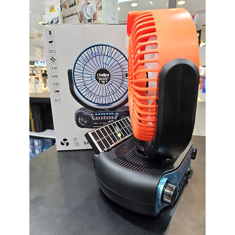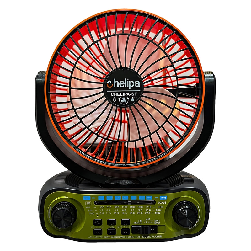 فن اسپیکر اورجینال چلیپا, واردات انحصاری تیم تکنیک تل | پنکه رومیزی قابلچرخش با طراحی جمعوجور | اسپیکر بلوتوث با نسخه 5.3 + پشتیبانی از رم، فلش و AUX | رادیو با پوشش کامل موجهای AM / FM / SW1 / SW2 | پاور بانک داخلی با ظرفیت 4000 میلیآمپر (شارژ از طریق خورشید و تایپ C) | چراغ LED پشت دستگاه با ۳ سطح نوردهی | دارای ریموت کنترل | قابلیت آویزان کردن برای استفاده در کمپ و سفر | ایدهآل برای طبیعتگردی، سفر، خانه و محل کار