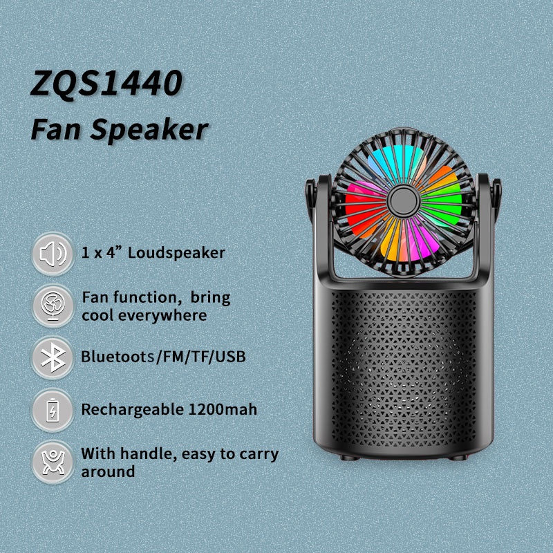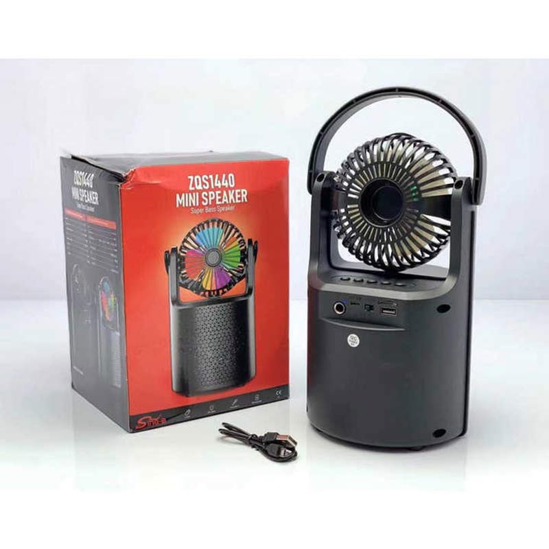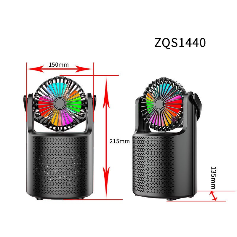 پنکه شارژی مدل اسپیکر دار ZQS1440 ظرفیت 1500 میلی آمپر ساعت