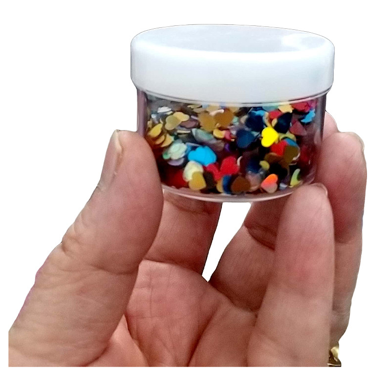 این بسته شامل 12گرم اکلیل خالص به شکل قلب درچند رنگ مختلف در ظرف شفاف در پیچی است.وزن اکلیل به همراه ظرف 22 گرم است.