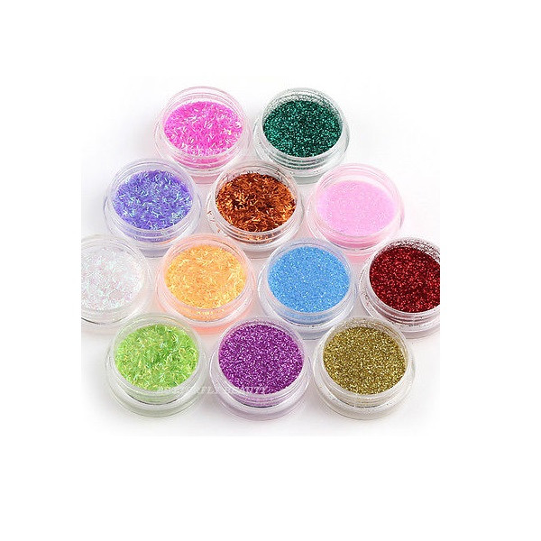 12 عدد قوطی اکلیل پودری جدید (قوطی های نمک پاشی) در رنگ های پر کاربرد و شاد