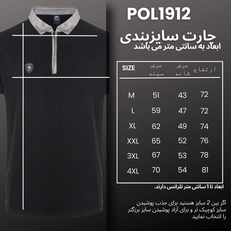 پولوشرت آستین کوتاه ورزشی مردانه نوزده نودیک مدل POL912 BG