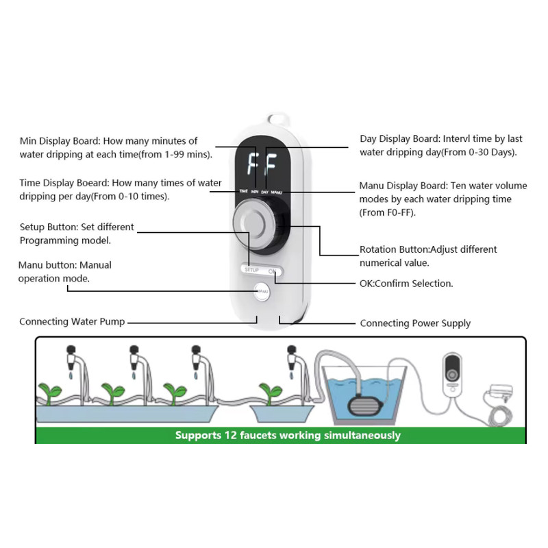 - رنج زمانی طولِ مدت آبیاری 0 تا 99 دقیقه