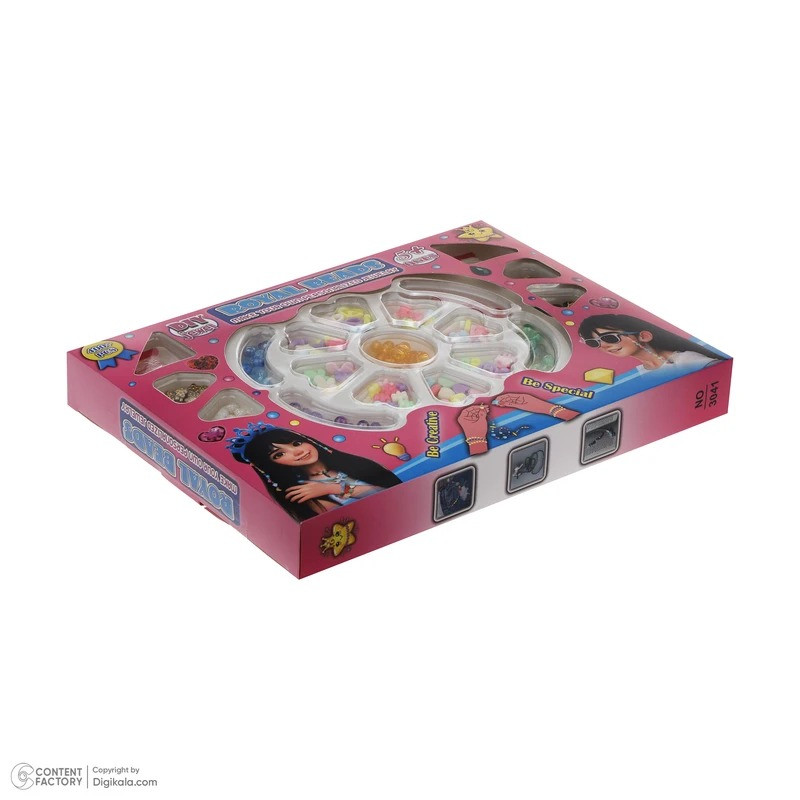 زیورآلات رنگی طی چند سال اخیر مورد توجه مردم و به خصوص خانمهای جوان و کودکان و نوجوانان قرار گرفته است و در انواع مختلف اکسسوری همچون گردنبند، دستبند، پابند، گوشواره و انواع آویز موبایل یا عینک مورد استفاده قرار میگیرید. نکته جذاب و قابل توجه در مورد این مدل زیورآلات این است که به راحتی در منزل قابل ساخت با دست هستند و نیاز به آموزش و تخصص خاصی ندارد، تنها با در دست داشتن ابزار بسیار ساده مورد نیاز و کمی خلاقیت و نوآوری این امکان وجود دارد تا زیباترین اکسسوریها و زیورآلات طراحی و ساخته شود. این اکسسوریها به خصوص در فصل تابستان بسیار مورد استفاده قرار میگیرد و با لباسهای تابستانه استایل جذابی برای شما میسازد. این محصول برای بازی و سرگرمی کودکان تولید شده است اما با توجه به کاربردهای فراوان و کامل بودن آن، بیشتر از یک ابزار بازی خواهد بود. این مجموعه حاوی کاملترین پکیج ساخت زیورآلات از جمله: نخ مخصوص، کش بیرنگ و شفاف، پنج رنگ مختلف مهرههای شفاف رنگی، هشت طرح مختلف از مهرههای طرحدار رنگی پاستلی، مروارید طرحدار، چهار مدل مختلف خرجکار طلایی، مهرههای چوبی رنگی و انواع قفل و اتصالات مختلف برای ساخت گوشواره، بند عینک، دستبند، گردنبند و سایر اکسسوری و زیورآلات است. از ابزارهای داخل این بسته میتوانید برای ساخت انواع کاردستی یا تزیین لباس و یا موارد دیگر نیز استفاده کنید. این پکیج کامل و کاربردی به کودک شما این امکان را میدهد تا با بکار گیری از هوش و خلاقیت خود به ساختن و خلق کردن بپردازد و علاوه بر سرگرمی، یک فعالیت مفید را دنبال کرده و برای خودش و اطرافیانش دست سازهای به وجود آورد که این امر به او اعتماد به نفس و احساس خودباوری میبخشد. ابزارهای این چنینی برای بازی و سرگرمی کودکان بسیار مفید هستند و به افزایش تمرکز حواس نیز کمک شایانی میکند. این محصول مناسب کودکان و نوجوانان بالاتر از پنج سال مناسب است که در هنگام خرید باید به این نکته توجه شود.
