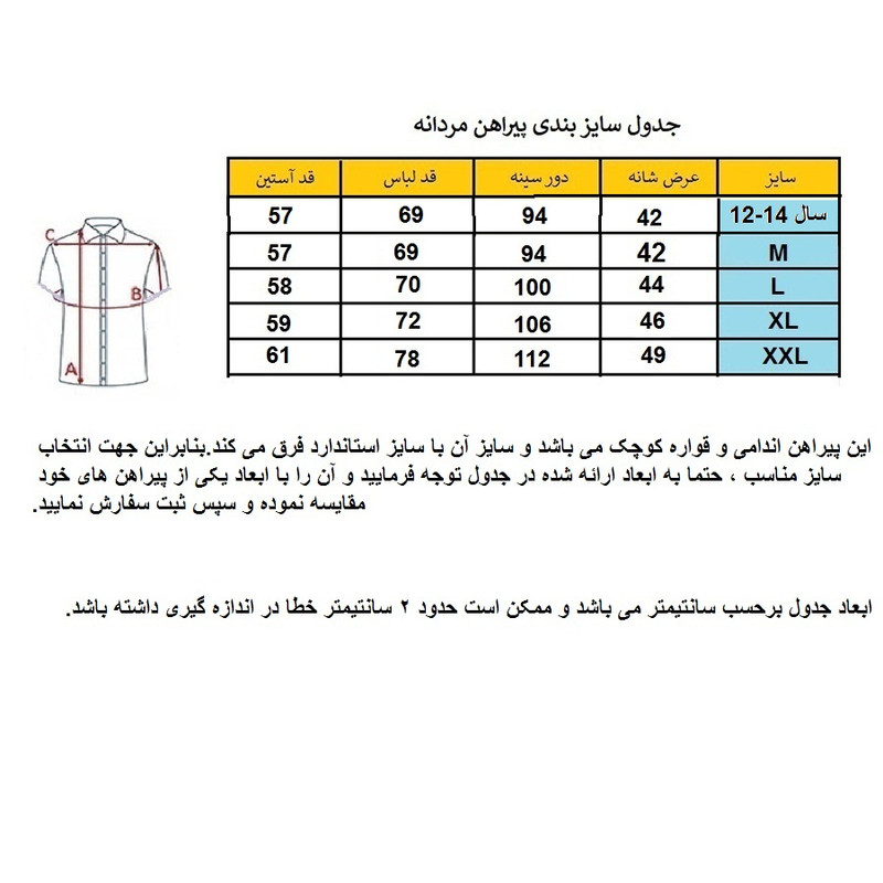 نوع پیراهن مردانه
