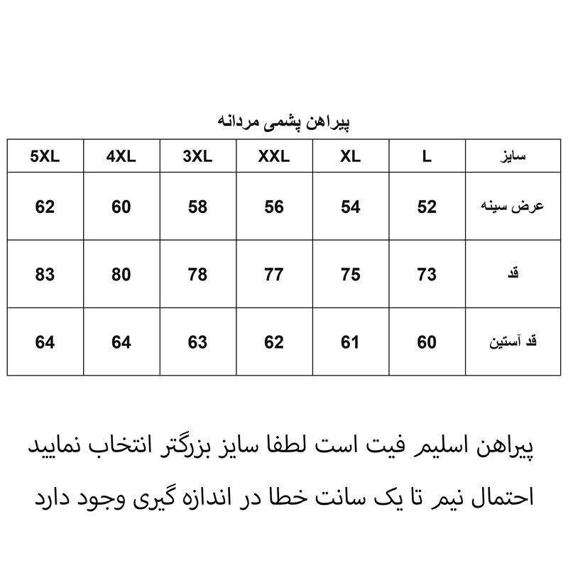 پیراهن پشمی مردانه/ پشمی ضخیم/ با استفاده مداوم دون دون و کهنه نمی شود/ مناسب فصول سرد سال/ مناسب استفاده روزمره، مهمانی و مخصوصا محیط کار/ لطفا سایز بزرگتر را انتخاب نمایید/ اسلیم فیت