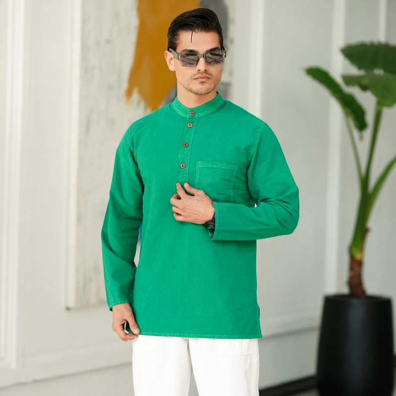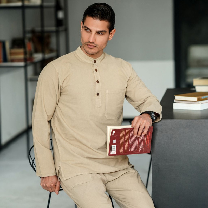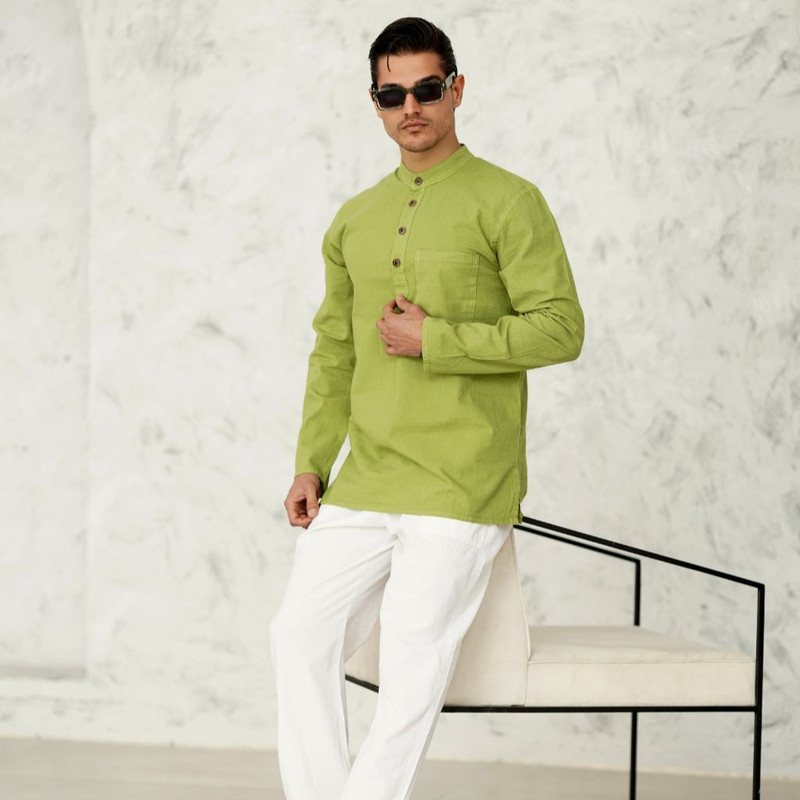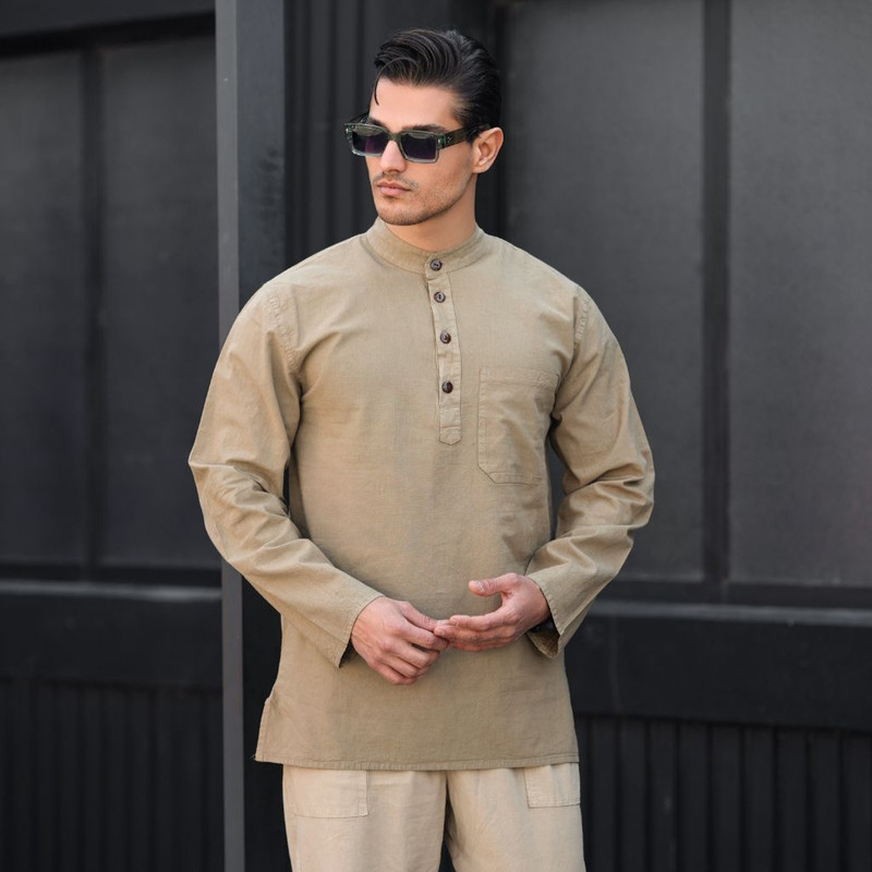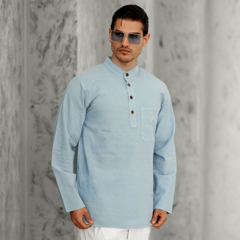 پیراهن آستین بلند یقه دیپلمات مردانه مدل ۴ دگمه
