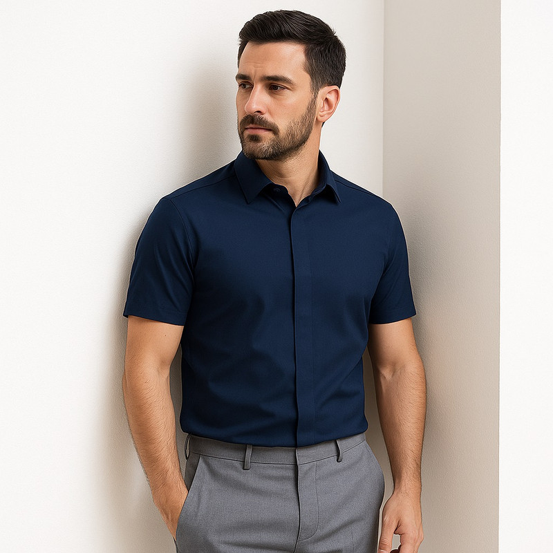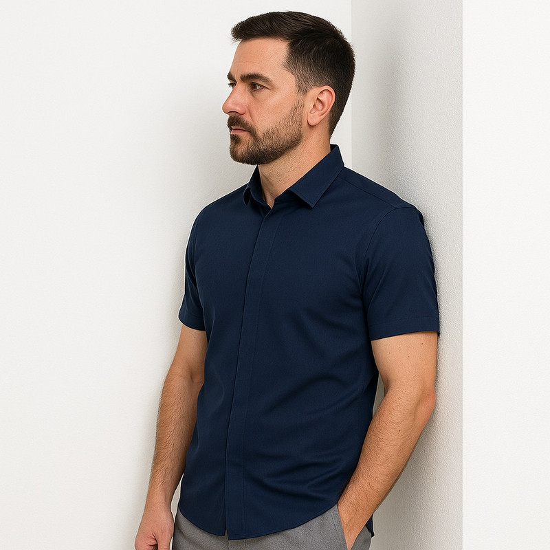 پیراهن آستین کوتاه یقه برگردان مردانه مدل بی نام کد SOR