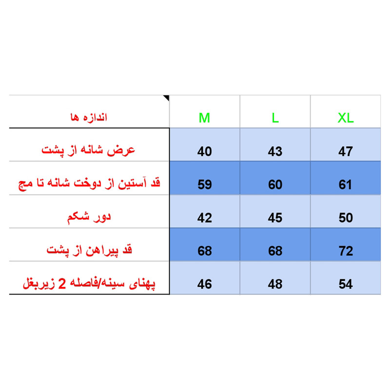 به منظور اینکه انتخاب بهتری داشته باشید لطفا راهنمای سایز بندی را در عکس آخر مشاهده نمایید