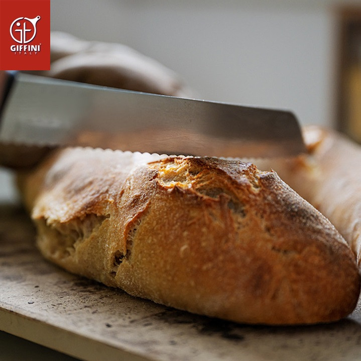 کارد با تیغه وانادیوم لیزری -دسته و بدنه یک تکه -مخصوص نان و محصولات فریز شده -مناسب مصرف روزانه - بسیار تیز و عالی -ضریب تیزی :۱۴ (بسیار تیز) -ساخت شرکت GIFFINI