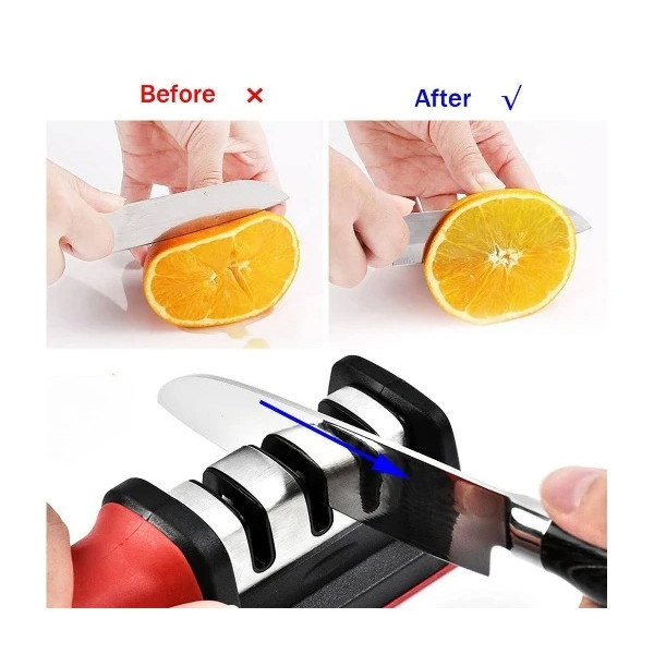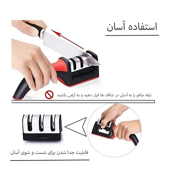 - دارای یک تیغه الماسه و دو تیغه سرامیکی - مناسب برای تیز کردن تیغه هایی از جنس استیل و روکش نچسب - دارای پد زیر کار جهت جلوگیری از سر خوردن - با روکش استیل ضد زنگ وسیستم EVA ضد لغزندگی جهت ایمنی هنگام کار - دستگیره با طراحی خاص - بسیار با کیفیت.