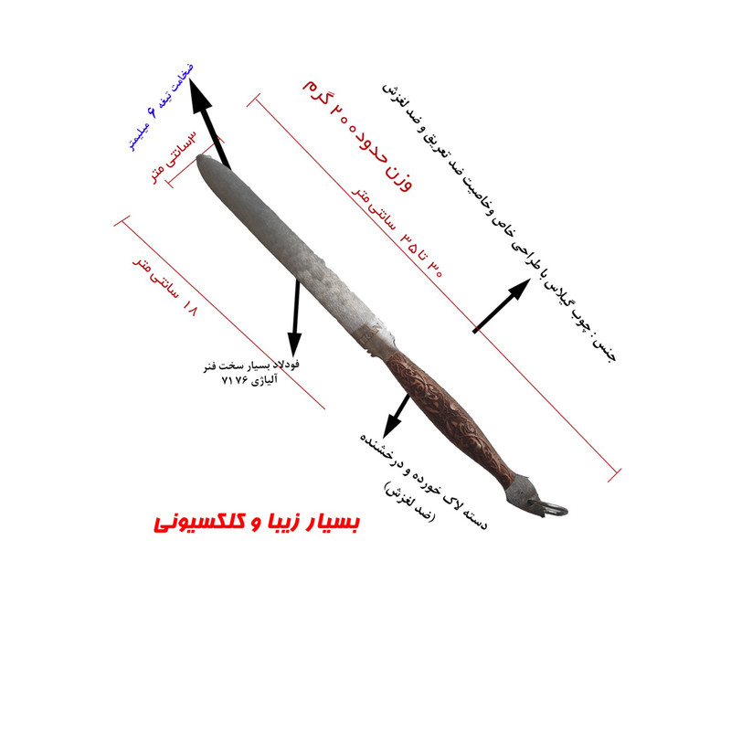 فولاد آلیاژی مدل 7176 جنس روکش دسته : چوب گیلاس کاربرد : ایز کردن چاقو ، ساطور و .... وزن مصقل : 200 گرم ضخامت تیغه مصقل : 5 میلیمتر طول کل مصقل : بین 30 تا 35 سانتیمتر طول دسته مصقل : 10 سانتیمتر فوقالعاده زیبا، خوش دست و کاربردی