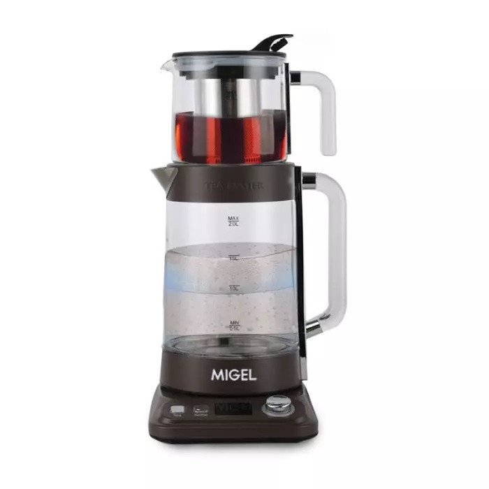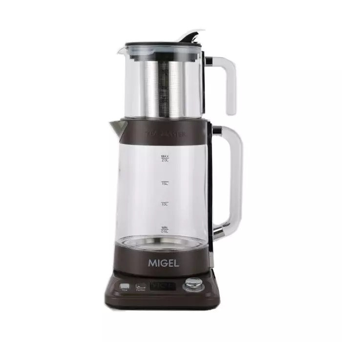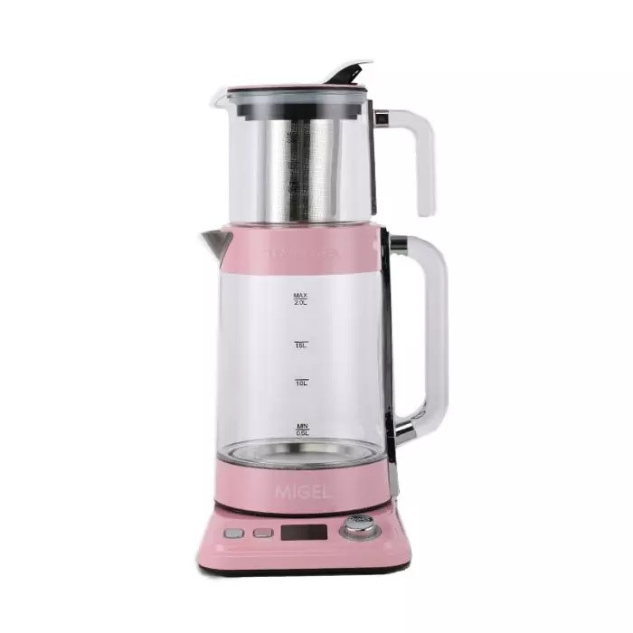دارای قوری شیشهای مقاوم به حرارت / ترموستات ایمنی (قطع جریان برق در حالت کتری خشک) / کتری بیسیم با قابلیت قرارگیری 360 درجه / چراغ نشانگر جوشآوری و نگهداری گرم / کفی دیجیتالی جهت کنترل دما