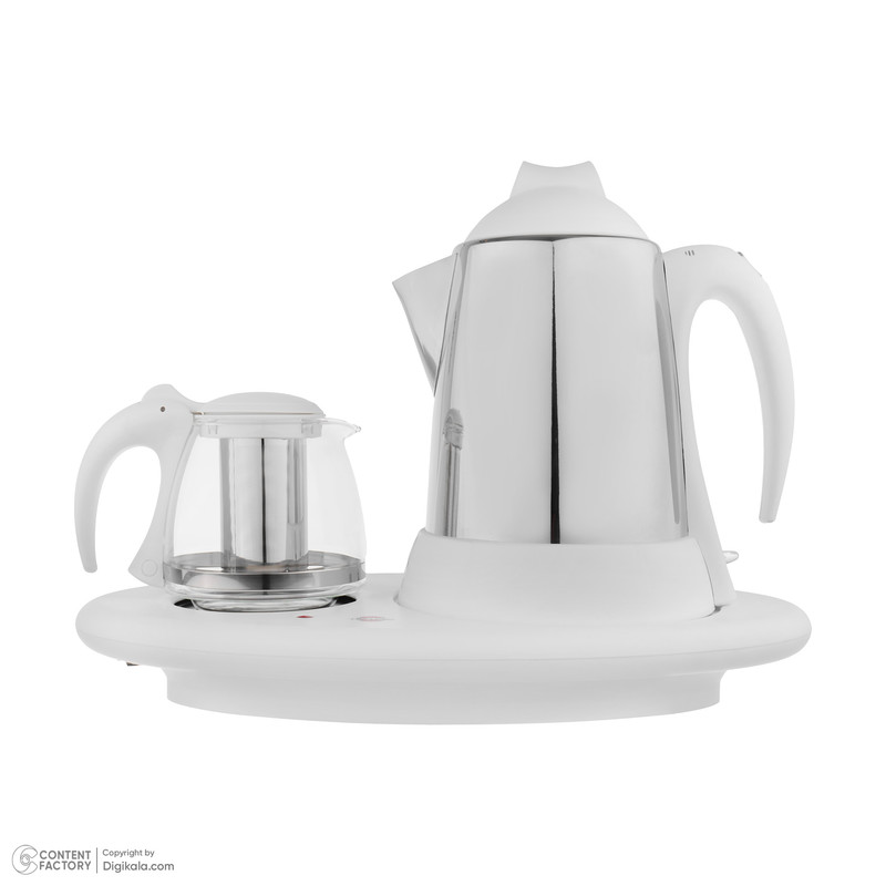 دارای دو کلید روشن و خاموش روی کتری و روی سینی، کلید اتئمایتک تنظیم جوش داغ و تنظیم جوش ملایم، دارای دو ترموستات جهت المنت هنگام خشک شدن آب داخل کتری، دارای فیلتر چای ضد زنگ، قابلیت اتفاده همزمان دو قوری