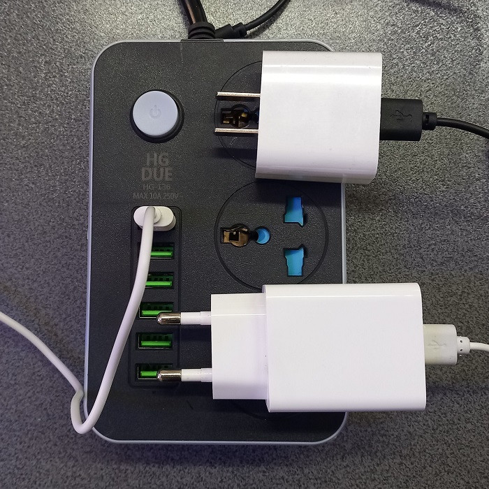6 پورت USB و دارای 3 خروجی برق سازگار با همه دو شاخه و سه شاخه ها