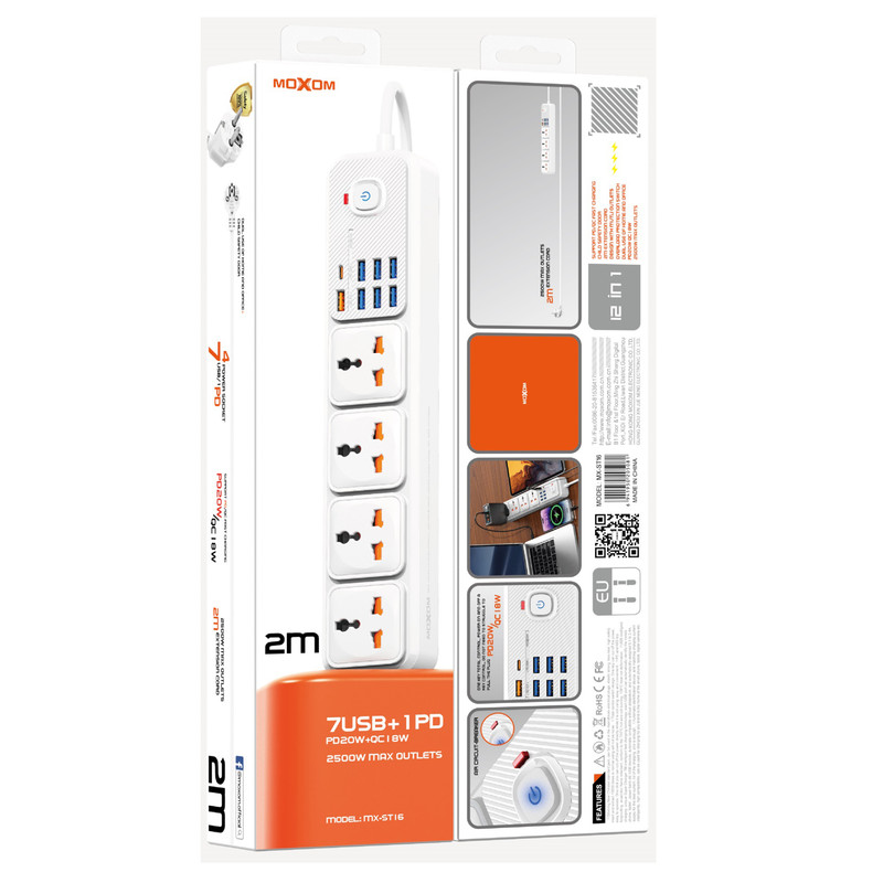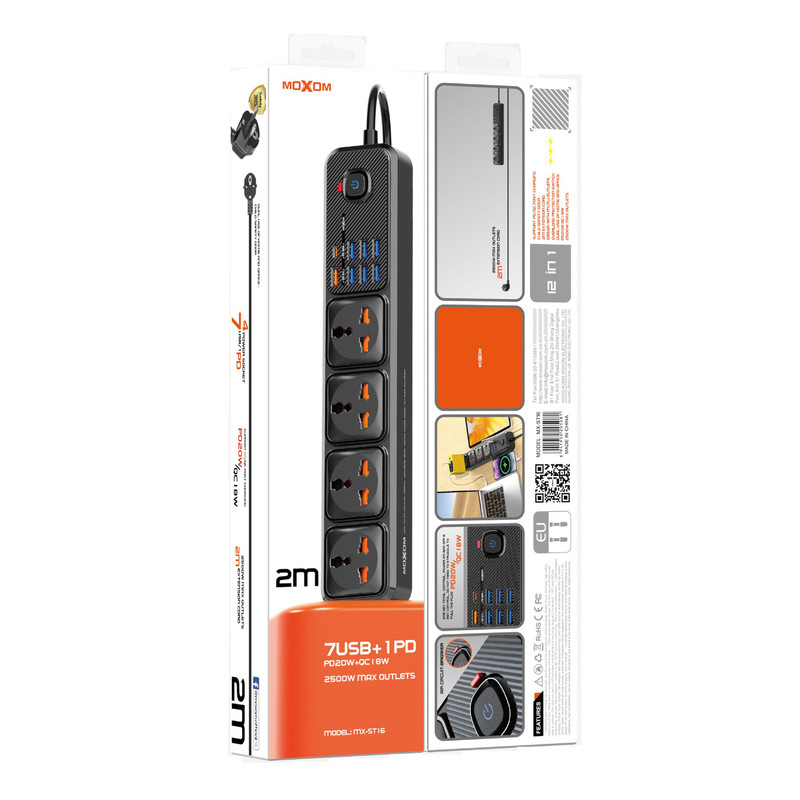 هاب شارژ رومیزی اورجینال ماکسوم MOXOM مدل ST16 حرفه ای 2 متری