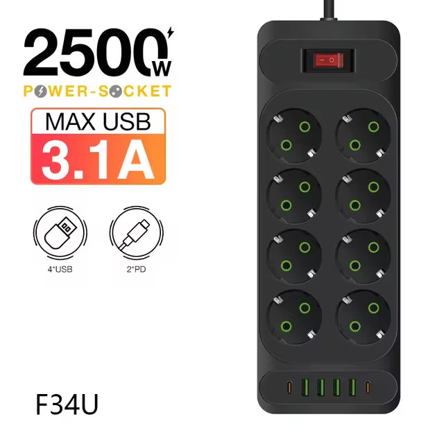 چندراهی برق پاورسوکت مدل F34u Type-C هشت خانه