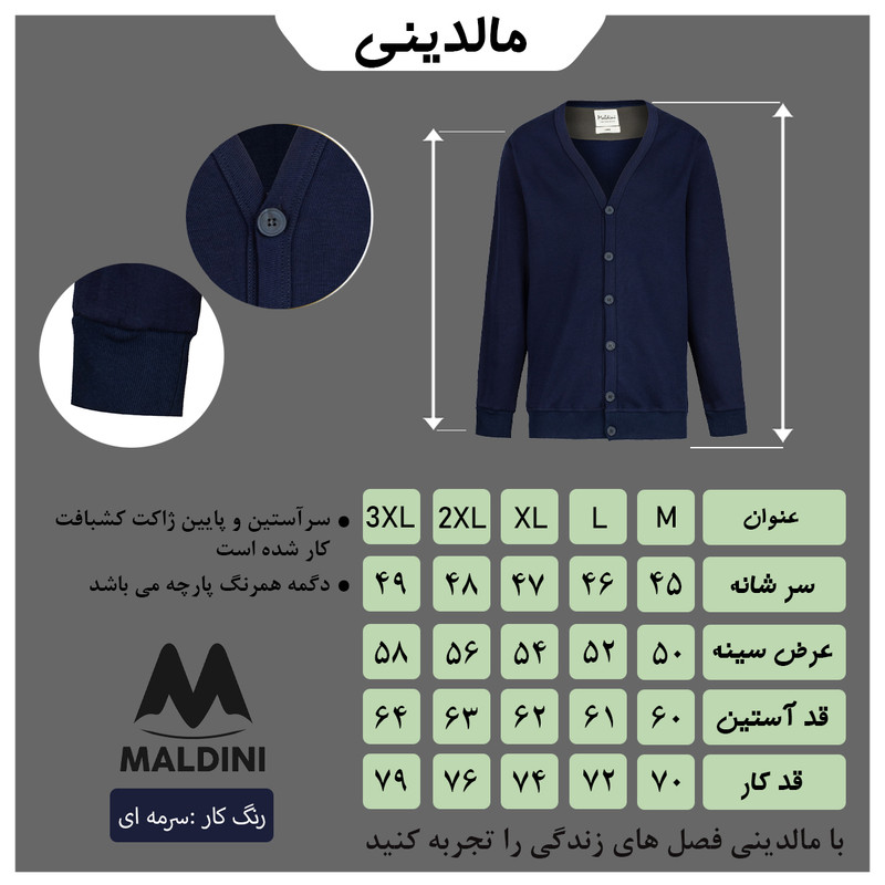 ژاکت مردانه مالدینی از جنس تمام پنبه می باشد که ضد حساسیت و بدون نخ کش شدن می باشد . دوخت این محصول صنعتی بوده که با حساسیت و پیشرفته ترین دستگاه های خیاطی دوخته شده و کاری تمیز و با کیفیت را در اختیار شما قرار می دهد