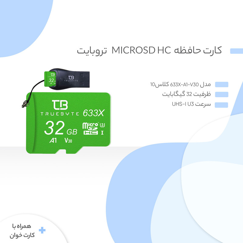 کارت حافظه microSD HC تروبایت مدل 633X-A1-V30 کلاس 10 استاندارد UHS-I U3 ظرفیت 32 گیگابایت به همراه کارت خوان