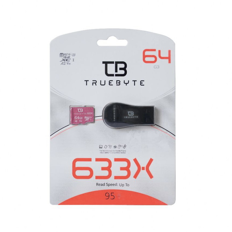 کارت حافظه microSD XC تروبایت مدل 633X-A2-V30 کلاس 10 استاندارد UHS-I U3 سرعت 95MBps ظرفیت 64 گیگابایت به همراه کارتخوان