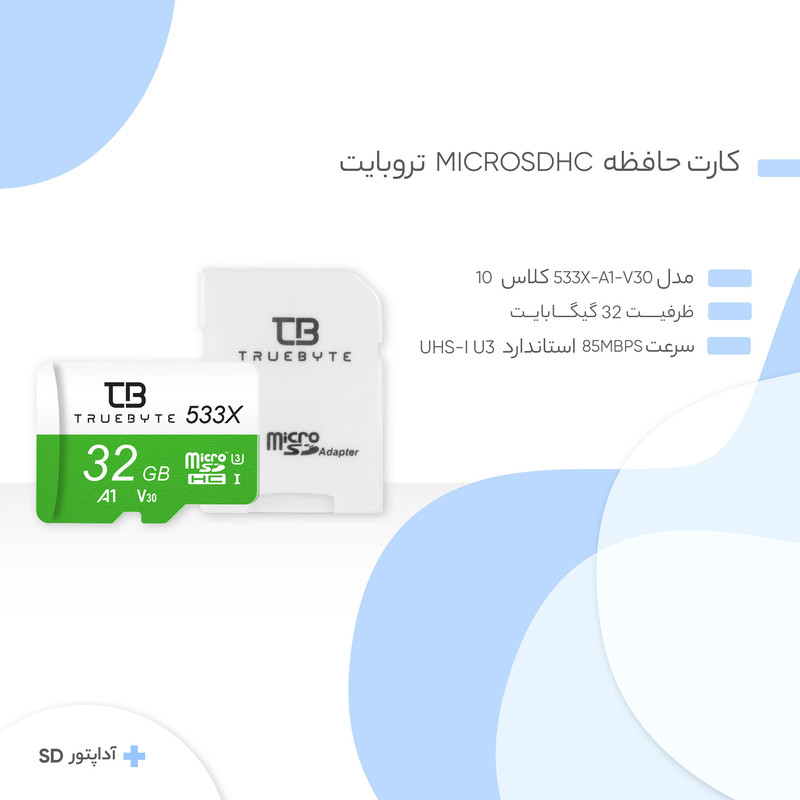 کارت حافظه microSDHC تروبایت مدل 533X-A1-V30 کلاس 10 استاندارد UHS-l U3 سرعت 85MBps ظرفیت 32 گیگابایت به همراه آداپتور SD