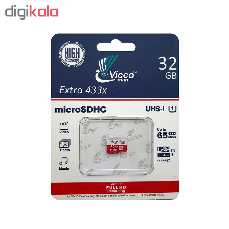 کارت حافظه microSDHC ویکومن مدل Extra 433X کلاس 10 استاندارد UHS-I U1 سرعت 65MBps ظرفیت 32 گیگابایت