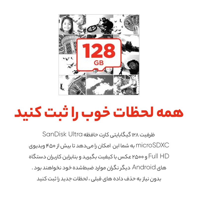 کارت حافظه microSDXC سن دیسک مدل Ultra کلاس 10 استاندارد UHS-I U1 سرعت 100MBps ظرفیت 128 گیگابایت