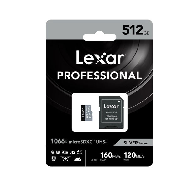 کارت حافظه microSDXC لکسار مدل 1066X کلاس A2 استاندارد UHS-U3 سرعت 160MBps ظرفیت 512 گیگابایت