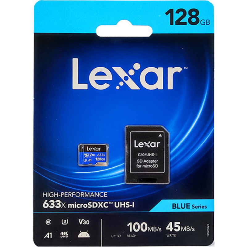 کارت حافظه microSDXC لکسار مدل V30 A1 کلاس 10 استاندارد UHS-I U3 سرعت 100MBps ظرفیت 128گیگابایت به همراه آداپتور SD
