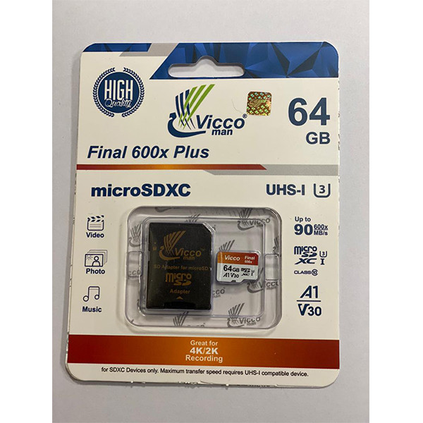کارت حافظه microSDXC ویکومن مدل Final 600X کلاس 10 استاندارد UHS-I U3 سرعت 90MBps ظرفیت 64 گیگابایت به همراه آداپتور SD