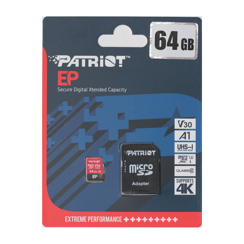 کارت حافظه microSDXC پتریوت مدل EP کلاس 10 استاندارد UHS-I U3-V30 سرعت 90MBpsظرفیت 64 گیگابایت به همراه آداپتورSD