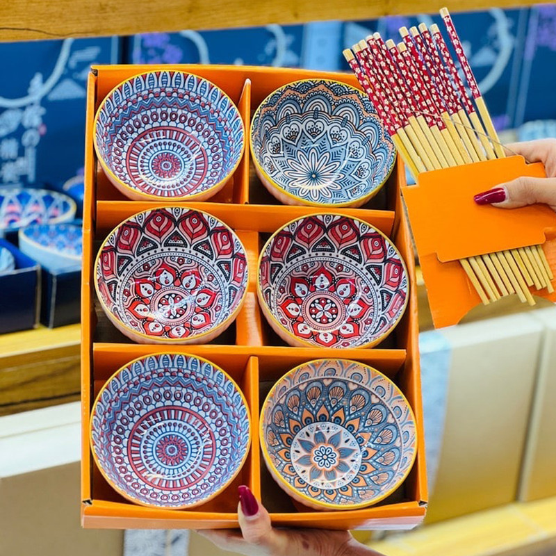 کاسه مدل بوهمیا مجموعه 6 عددی به همراه چاپستیک