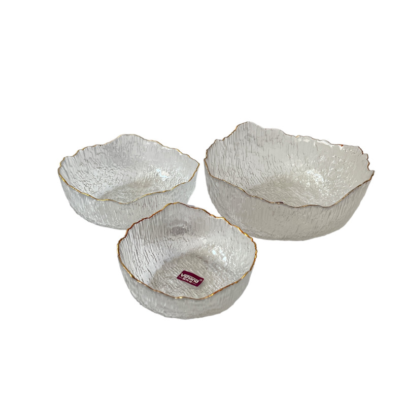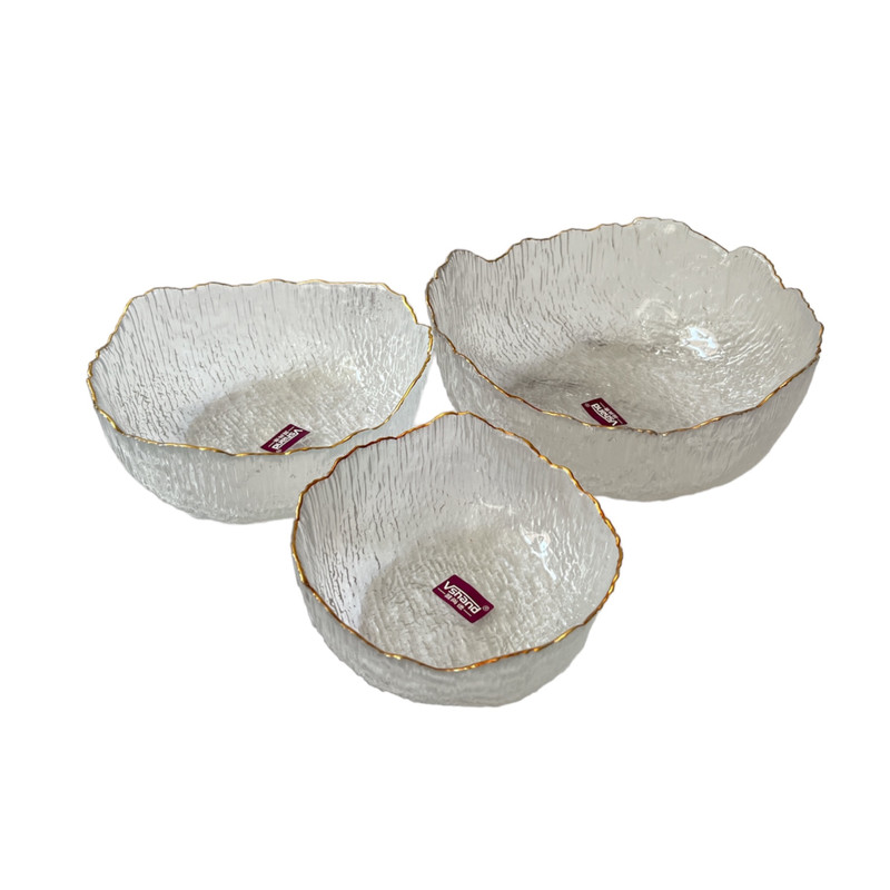 کاسه 3 تایی یخی دفرمه لبه طلایی کد VT2795