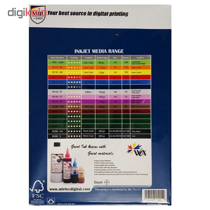 کاغذ عکس گلاسه میر مدل M150-HG سایز A4 بسته 100 عددی